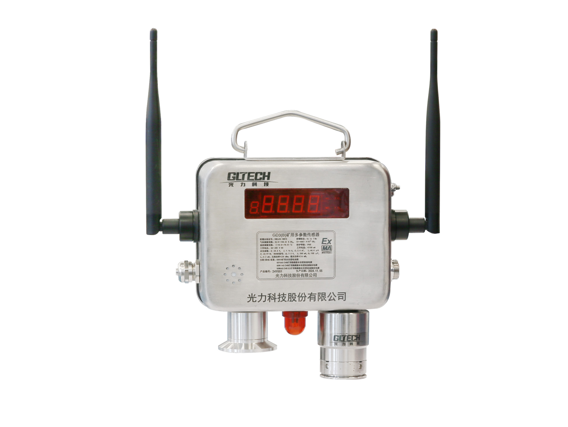 GD3(B) multi-parameter sensor for mining is mainly used to monitor environmental parameters such as underground gas in coal mines, and can measure up to three parameters of methane, carbon monoxide and temperature at the same time. As an intelligent monitoring instrument, the sensor is stable, reliable, and easy to use. Functions such as zero-setting, accuracy adjustment, and alarm threshold setting can all be achieved through remote control, and equipment can be integrated with the coal mine safety monitoring system for gas parameter monitoring.