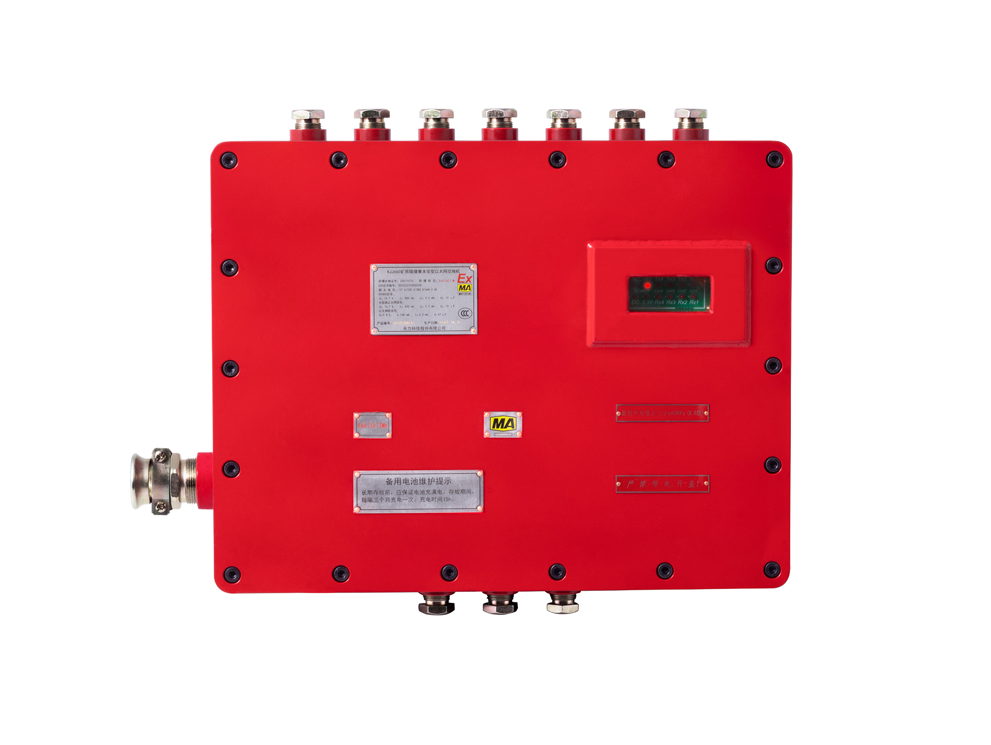 The KJJ660(A) intrinsically safe and explosion-proof industrial Ethernet switch for mining is a device designed for reliable data communication in industrial environments, particularly in mining operations. It supports Ethernet networking and complies with IEEE 802.3 standards, providing stable and secure network communication.
