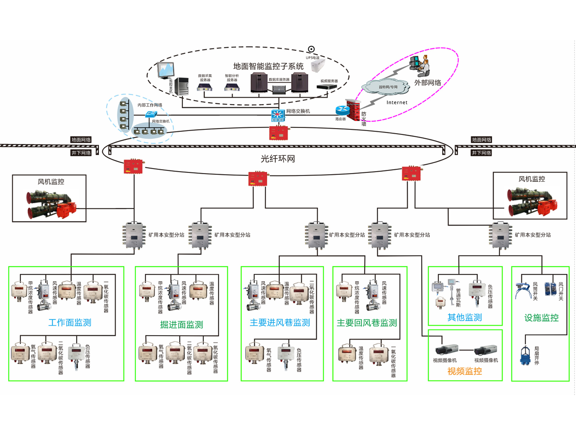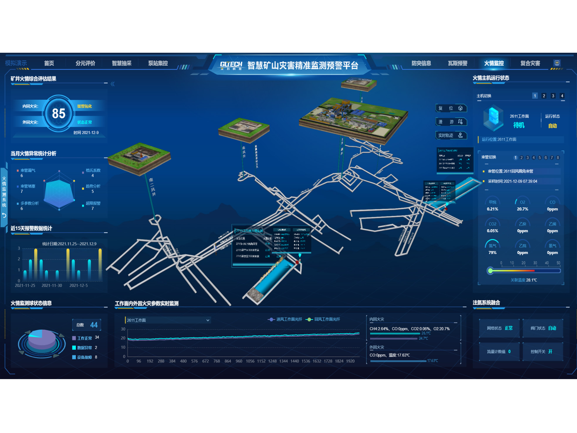 KJ835X is a next-generation comprehensive monitoring and communication system designed for the coal mining industry with IoT-based(Internet of Things) sensors and equipment. The system is based on leading-edge sensor and big data analytics technologies, offering accurate measurement, stable transmission, and reliable performance. It is integrated with advanced intelligent analysis models to automatically analyze and detect anomalies. The system is for comprehensive real-time monitoring, analysis, and control of personnel, equipment, environment, and production process in coal mines to ensure safe production in coal mines. KJ835X not only monitors the comprehensive parameter of the entire coal mine including tunnel air conditions, ventilation system status, gas drainage status, video surveillance, personnel and equipment position, and equipment status but also supports the integration of external systems such as electrical control and communication.