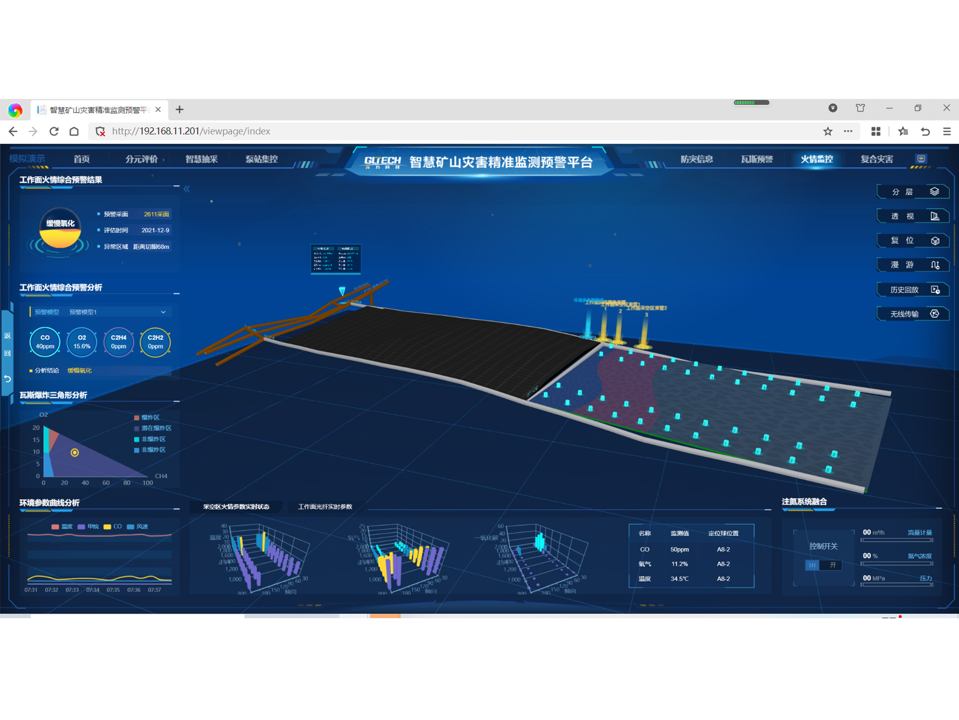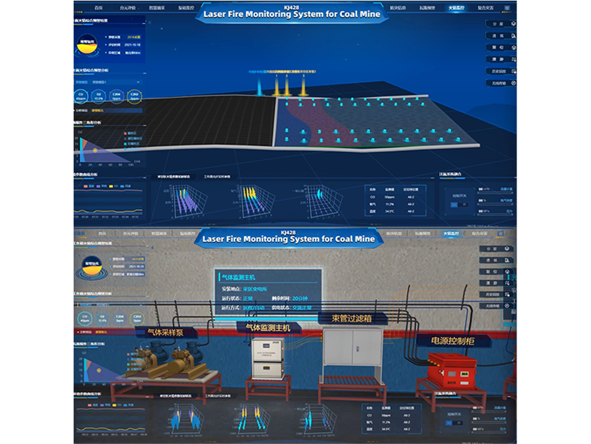 The system provides accurate monitoring, data analysis, and preventive warning of spontaneous combustion in goaf and confined areas, as well as fire hazard parameters in areas such as electrical equipment and belt conveyors. KJ428 can also perform fire prevention and extinguishing intervention control based on the analysis and processing results. The system also supports APP software function interface display, which is convenient for inspectors to monitor various gas indicators and tube bundle status in real-time.