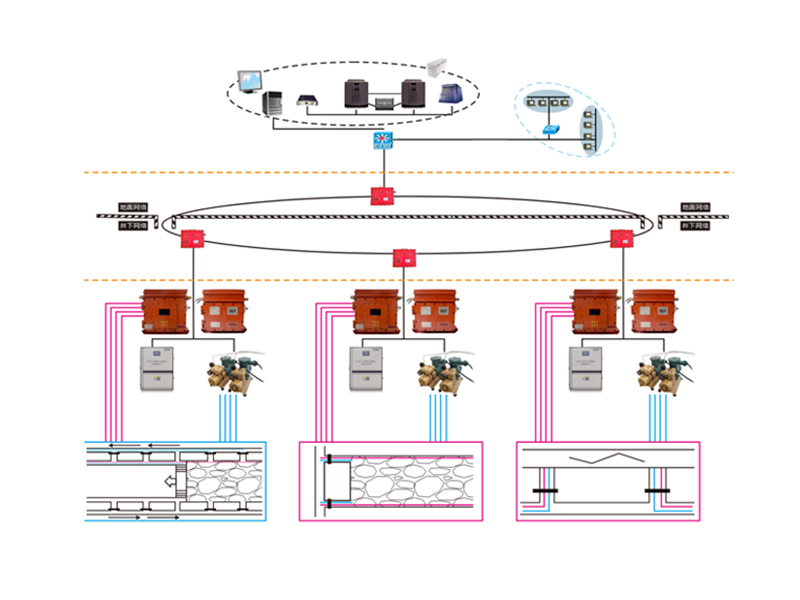 Transmission line (optical fiber) Transmission equipment (ring switch) | Carrying communication and data transmission between underground equipment and ground monitoring room |
